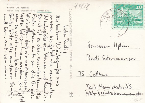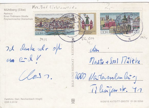 Prettin an der Elbe Postkarte mit Sonderstempel 1984
