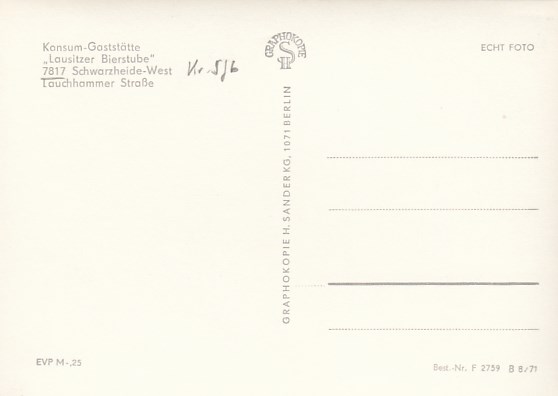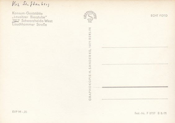 Schwarzheide Niederlausitz West Gaststätte Lausitzer Bierstube 1971