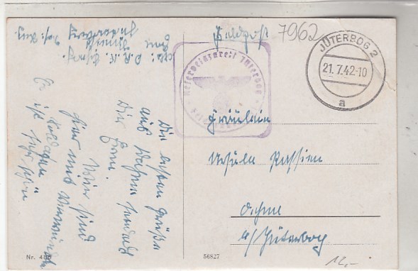 Dahme in der Mark Waldrestaurant Ziegelei Feldpoststempel Jüterbog 1942
