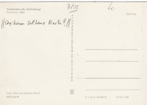 748 [7805o48] |  | Großräschen Niederlausitz Poliklinik 1972 | 4.00EUR 3.00EUR | In den Warenkorb |