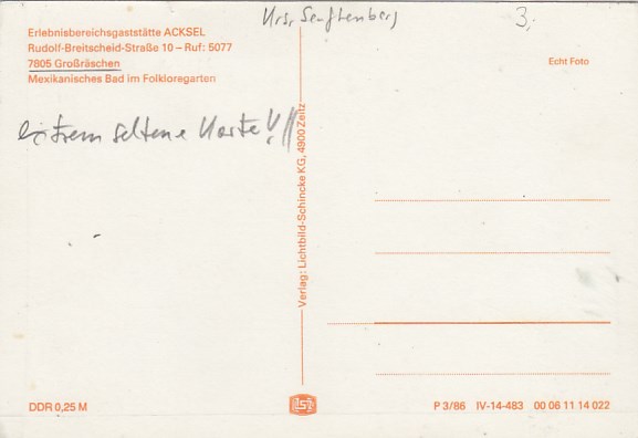 743 [7805o66] |  | Großräschen Niederlausitz Gaststätte ACKSEL 1986 | 3.00EUR 2.25EUR | In den Warenkorb |