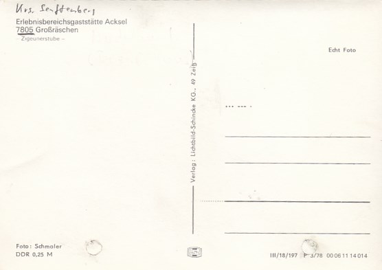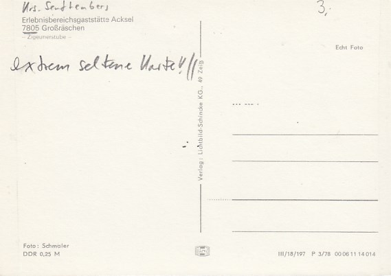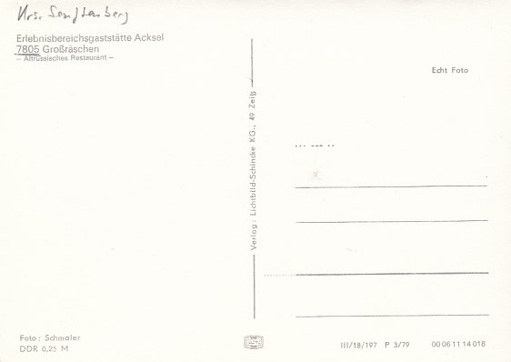 741 [7805o69] |  | Großräschen Niederlausitz Gaststätte ACKSEL 1978 | 3.00EUR 2.25EUR | In den Warenkorb |