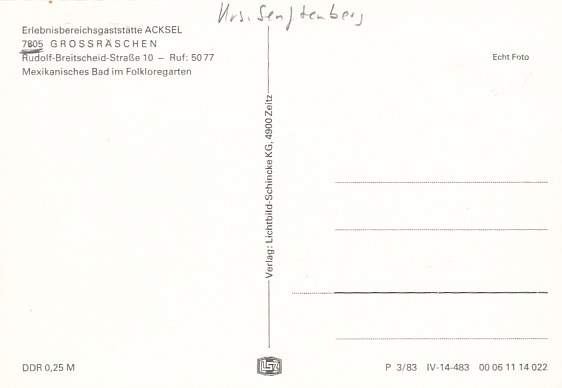 742 [7805o57] |  | Großräschen Niederlausitz Gaststätte ACKSEL 1983 | 3.00EUR 2.25EUR | In den Warenkorb |