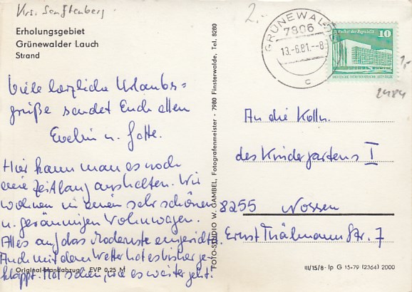 769 [7806o3] |  | Grünewalde Niederlausitz 1981 | 2.00EUR 1.50EUR | In den Warenkorb |