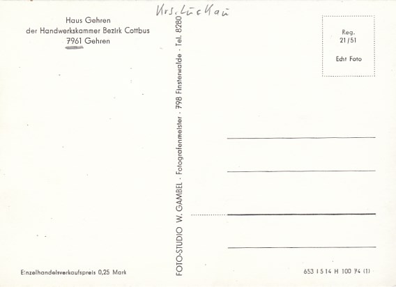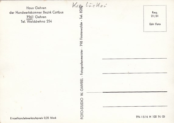 704 [7961o71] |  | Gehren Niederlausitz Handwerkererholungsheim 1975 | 3.00EUR | In den Warenkorb |