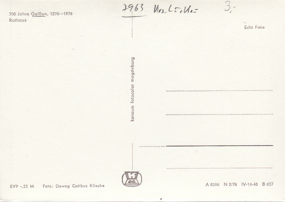 712 [7963o19] |  | Golßen Niederlausitz Rathaus 1976 | 3.00EUR 2.25EUR | In den Warenkorb |