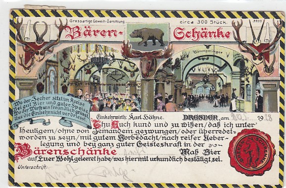 947 [8000o1224] |  | Dresden Litho Ansichtskarte Bären-Schänke 1928 | 10.00EUR | In den Warenkorb |