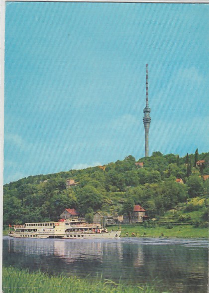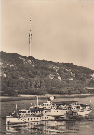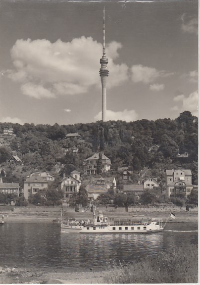 Dresden Stadtteil Wachwitz Fernsehturm Raddampfer ca 1980