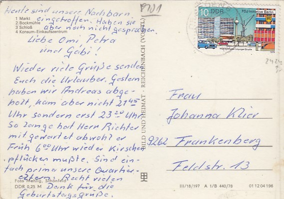 PLZ 01 u. 019 Bad Schandau Dresden Kamenz Tharandt Meißen Riesa