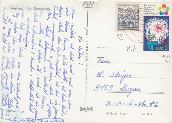 PLZ 01 u. 019 Bad Schandau Dresden Kamenz Tharandt Meißen Riesa