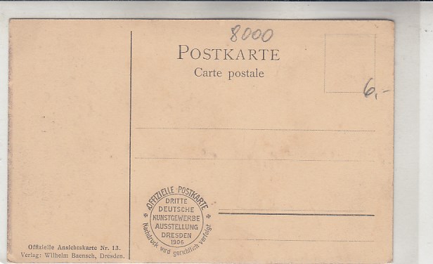 Dresden Künstlerkarte Sonderstempel Ausstellung 30.08.1896