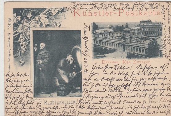 Dresden Künstlerkarte Zwinger und Klosterkeller 1898