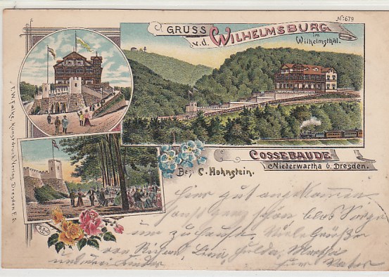 Dresden Stadtteil Niederwartha Cossebaude Wilhelmsburg Litho 1902