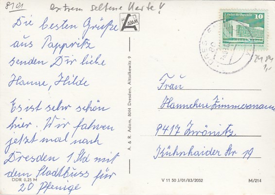 Dresden Postkarte mit Sonderstempel Johann Georg Palitzsch 1983
