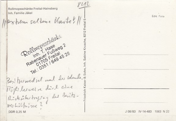 Gaststätte Wahlsmühle im Pöbeltal bei Schmiedeberg im Osterzgebirge VEB Schokopack 1960