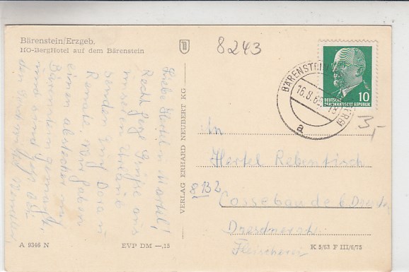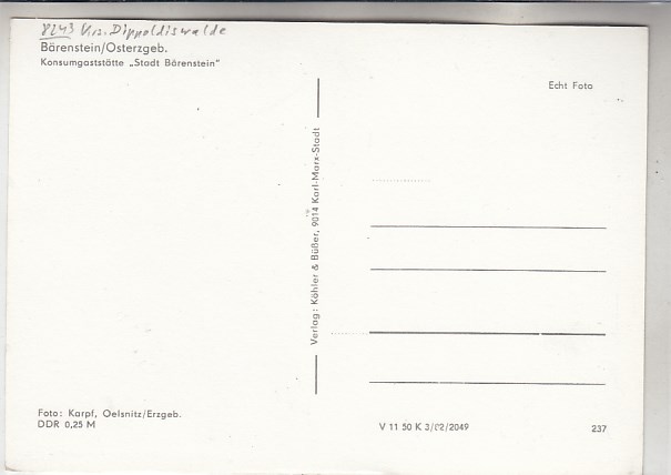 Bärenstein im Osterzgebirge Gaststätte 1963
