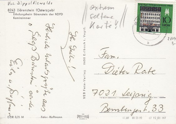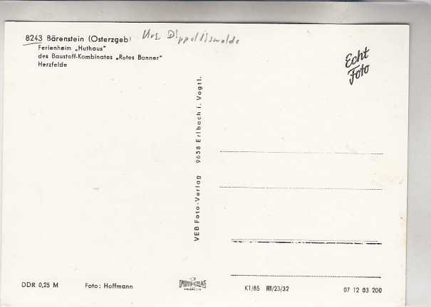 Bärenstein im Osterzgebirge Ferienheim Huthaus ca 1980