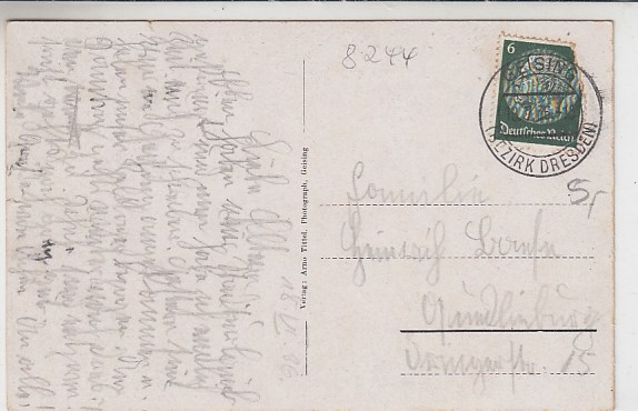 Diera-Zehren Landpoststempel Mischwitz Meißen 1929
