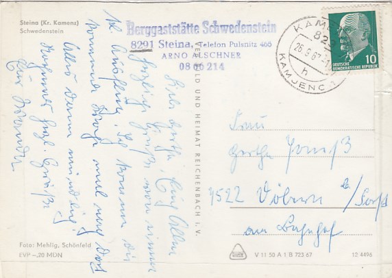 Gaststätte Schwedenstein Steina bei Pulsnitz1967