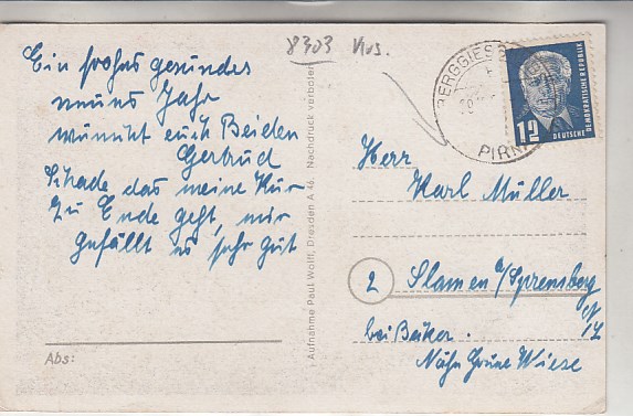PLZ 01 u. 019 Bad Schandau Dresden Kamenz Tharandt Meißen Riesa