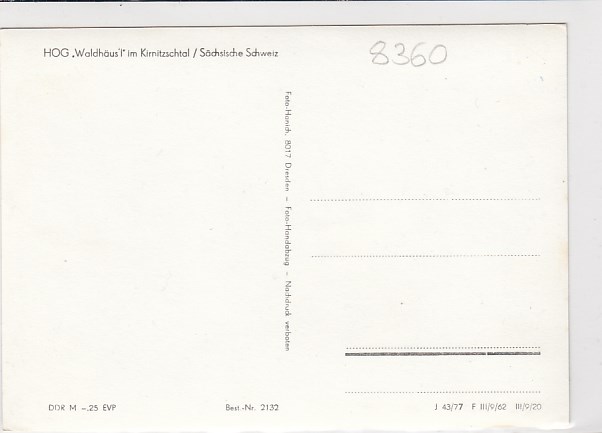 Bad Schandau Forsthaus Kirnitzschtal 1957