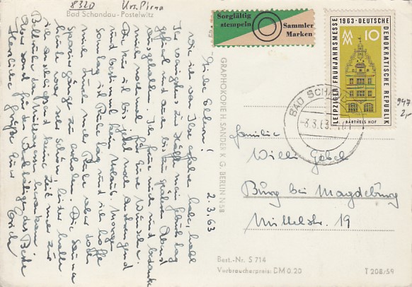 PLZ 01 u. 019 Bad Schandau Dresden Kamenz Tharandt Meißen Riesa