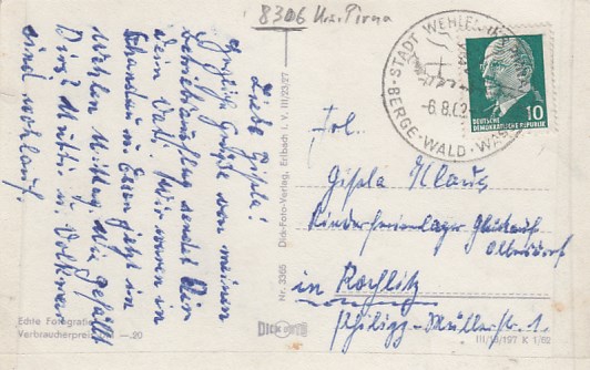 Bad Schandau-Ostrau FDGB Heim Erwin Hartsch 1953