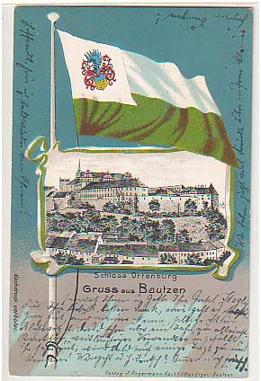 Ansichtskarte Bautzen mit Fahne und Wappen 1902