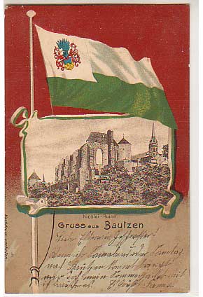Ansichtskarte Bautzen mit Fahne und Wappen 1903