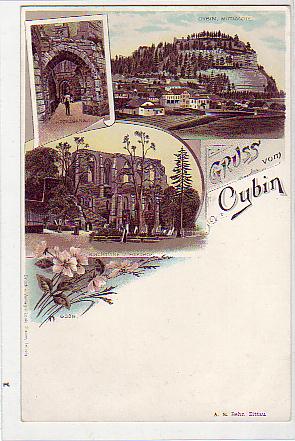 Oybin Litho Kreuzgang,Kirchruine ca 1900
