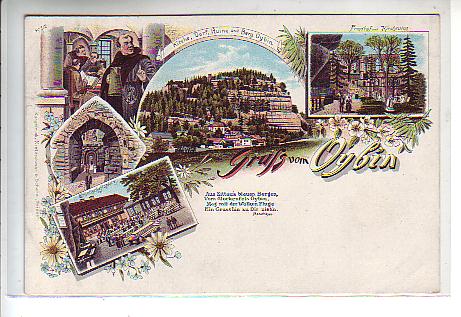 Oybin Litho mit Gasthaus,Friedhof,Kloster bei Zittau ca 1900