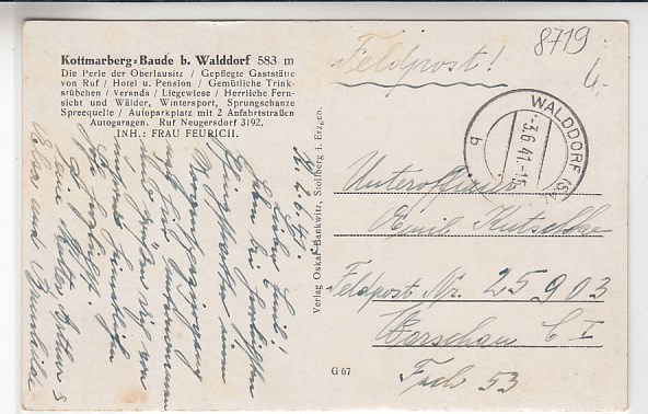 Jonsdorf Oberlausitz HOG Kurhaus 1967