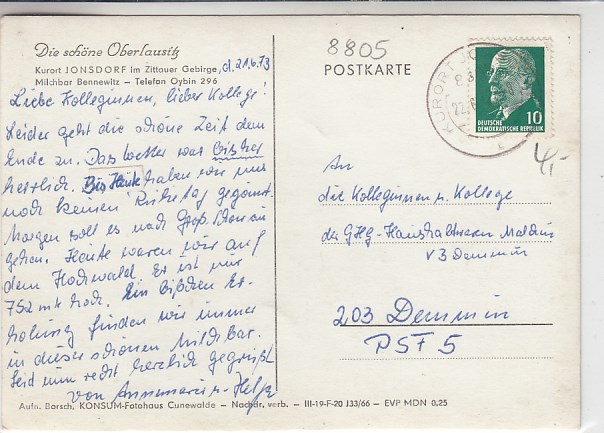 Jonsdorf Oberlausitz Postkarte mit Sonderstempel 1989
