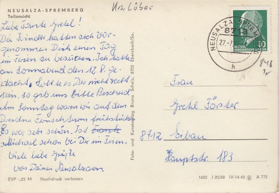 PLZ 018 u.02 Bischowswerda Bautzen Herrnhut Löbau Görlitz Zitta