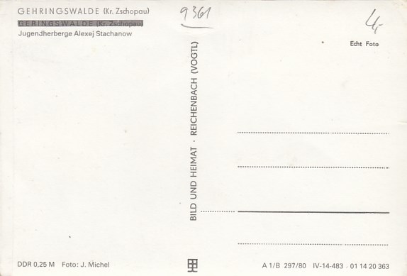 Gehringswalde im Erzgebirge Jugendherberge 1980