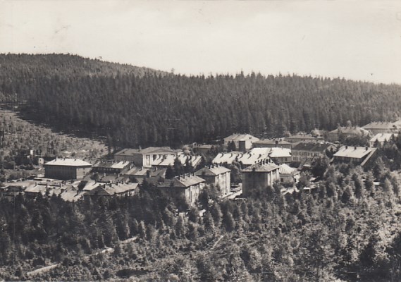 Blick vom Auersberg nach Sosa bei Wildenthal in Sachsen im Erzgebirge 1959
