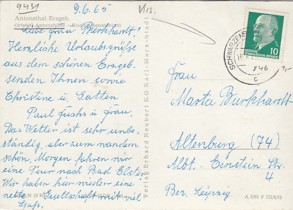 Breitenbrunn OT Antonshöhe im Erzgebirge Sanatorium 1965