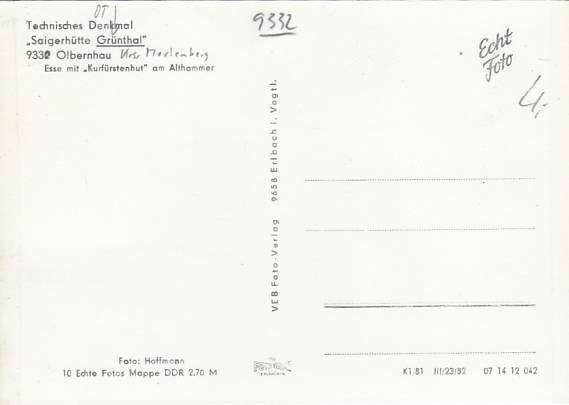 Olbernhau im Erzgebirge Museum Saigerhütte Grünthal 1986
