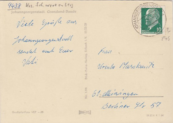 Johanngeorgenstadt im Erzgebirge Grenzland-Baude 1964
