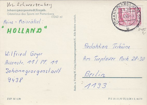 Johanngeorgenstadt im Erzgebirge Ferienheim VEB Lichtentanne 1982