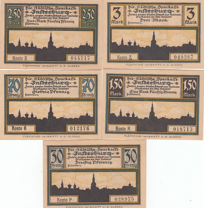 Insterburg Ostpreussen 5 Scheine Notgeld