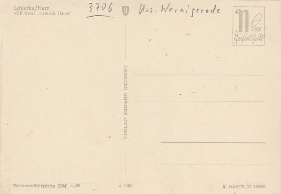 Schierke im Harz Hotel Heinrich Heine 1975