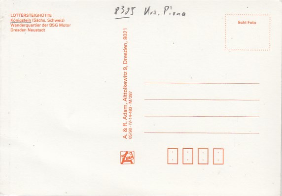 Königstein an der Elbe Wanderquartier Lottersteighütte 1980