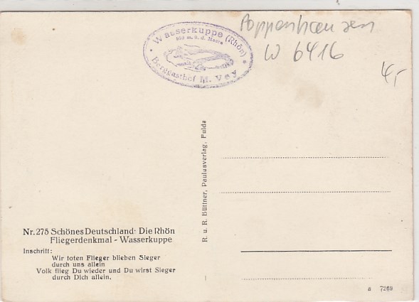 Wasserkuppe Rhön Segelflug-Flugzeug bei Poppenhausen Fliegerdenkmal