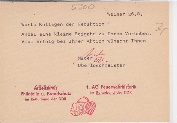 Weimar Anlaß Postkarte Freiwillige Feuerwehr